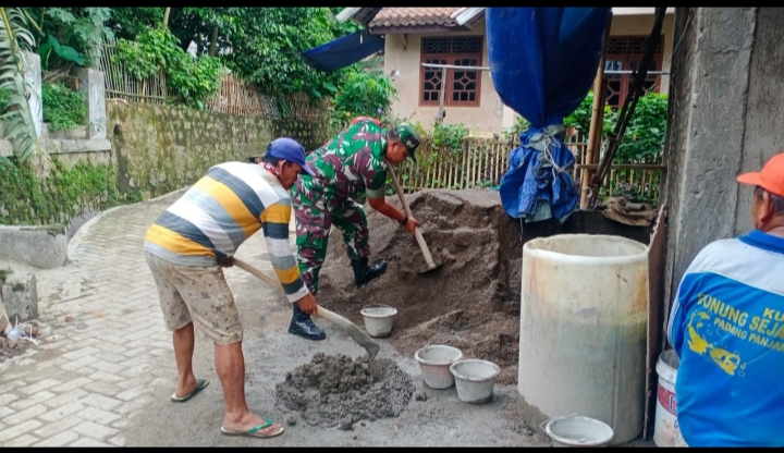 “Dimana Babinsa Desa Kertasana yang mendapatkan tugas dari Danramil Bojonegara mengatakan dalam melaksanakan giat Karbak gotong royong membantu pembangunan rumah warga di wilayah Desa Kertasana,” ujar Babinsa Peltu A Rokhim.