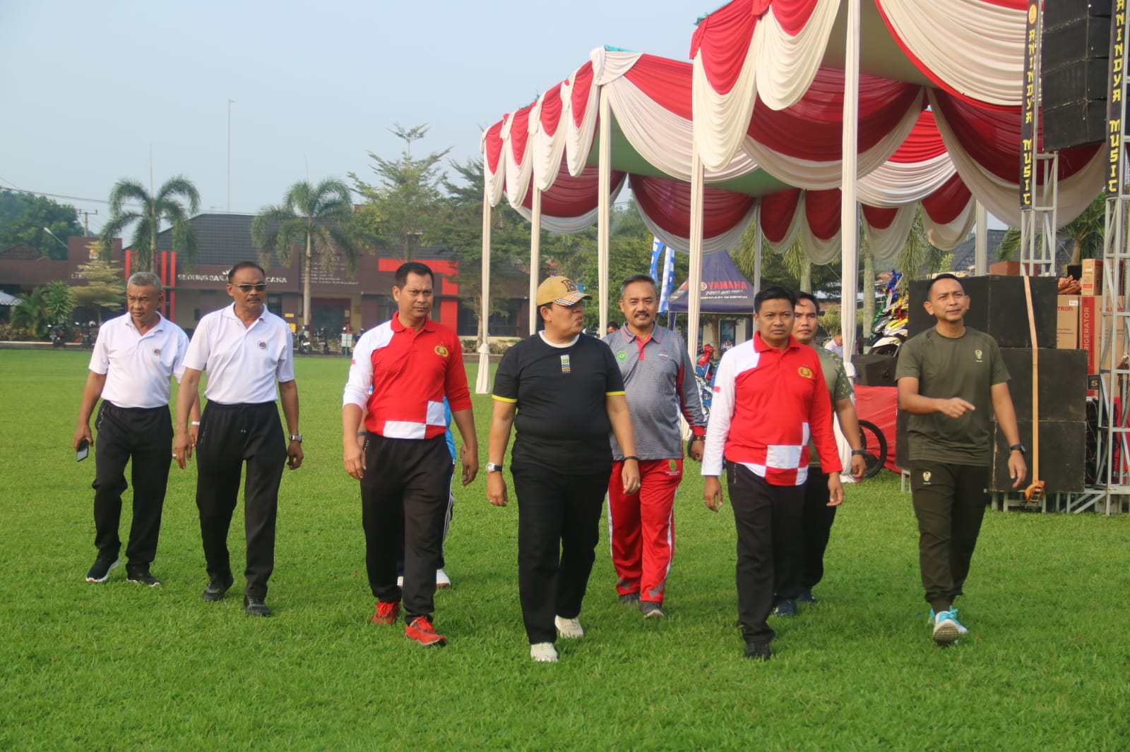 Olahraga bersama TNI Polri dan Forkopimda yang di gelar Polres Lampung Timur dalam rangka menyambut HUT Bhayangkara ke-77 tahun 2023, Kamis (22/6).