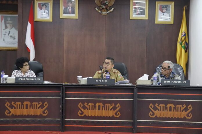 Pemprov Lampung yang diwakili Inspektur Provinsi Lampung, Fredy, mengikuti acara Pemantauan Program Pemetaan Titik Rawan Korupsi Pada Badan Usaha di Provinsi Lampung Tahun 2022 bersama Dewan Pengawas KPK RI, di Ruang Abung Balai Keratun, Selasa (27/06/2023).