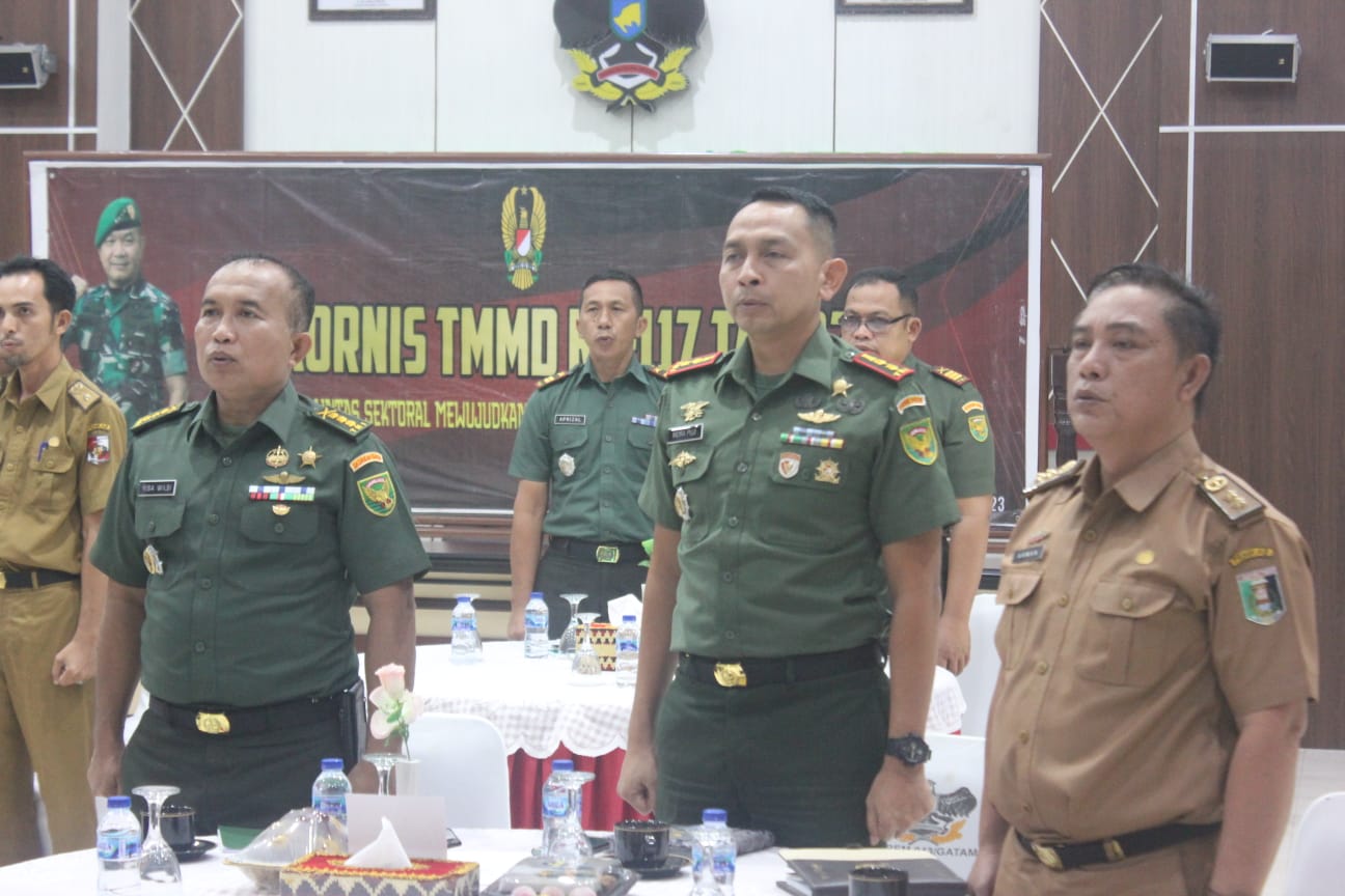 Sementara bertempat di Aula Sudirman Makorem 043/Gatam Komandan Korem 043/Gatam Brigjen TNI Iwan Ma’ruf Zainudin, S.E., mengikuti kegiatan Rakornis TMMD ke-117 di dampingi Kasiter Kasrem 043/Gatam Kolonel Inf Risa Wilsi SH.,M.H.