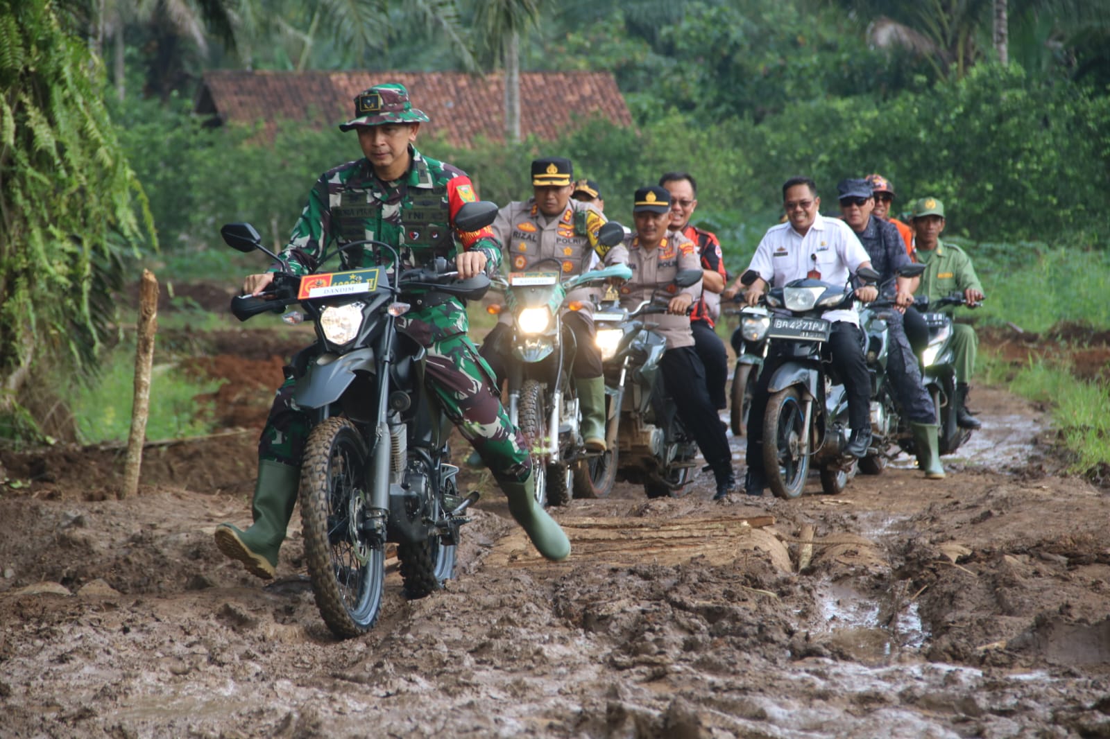 Didampingi Dansatgas TMMD ke-117 Letkol Czi. Indra Puji Triwanto, SH, Kapolres Lamtim AKBP M. Rizal Muchtar, S.H.,S.I.K.,M.H serta segenap tamu undangan Bupati Lampung Timur Dawam Rahardjo dengan mengendarai sepeda motor trail menyusuri medan yang tidak mudah guna mengecek secara langsung sasaran fisik.