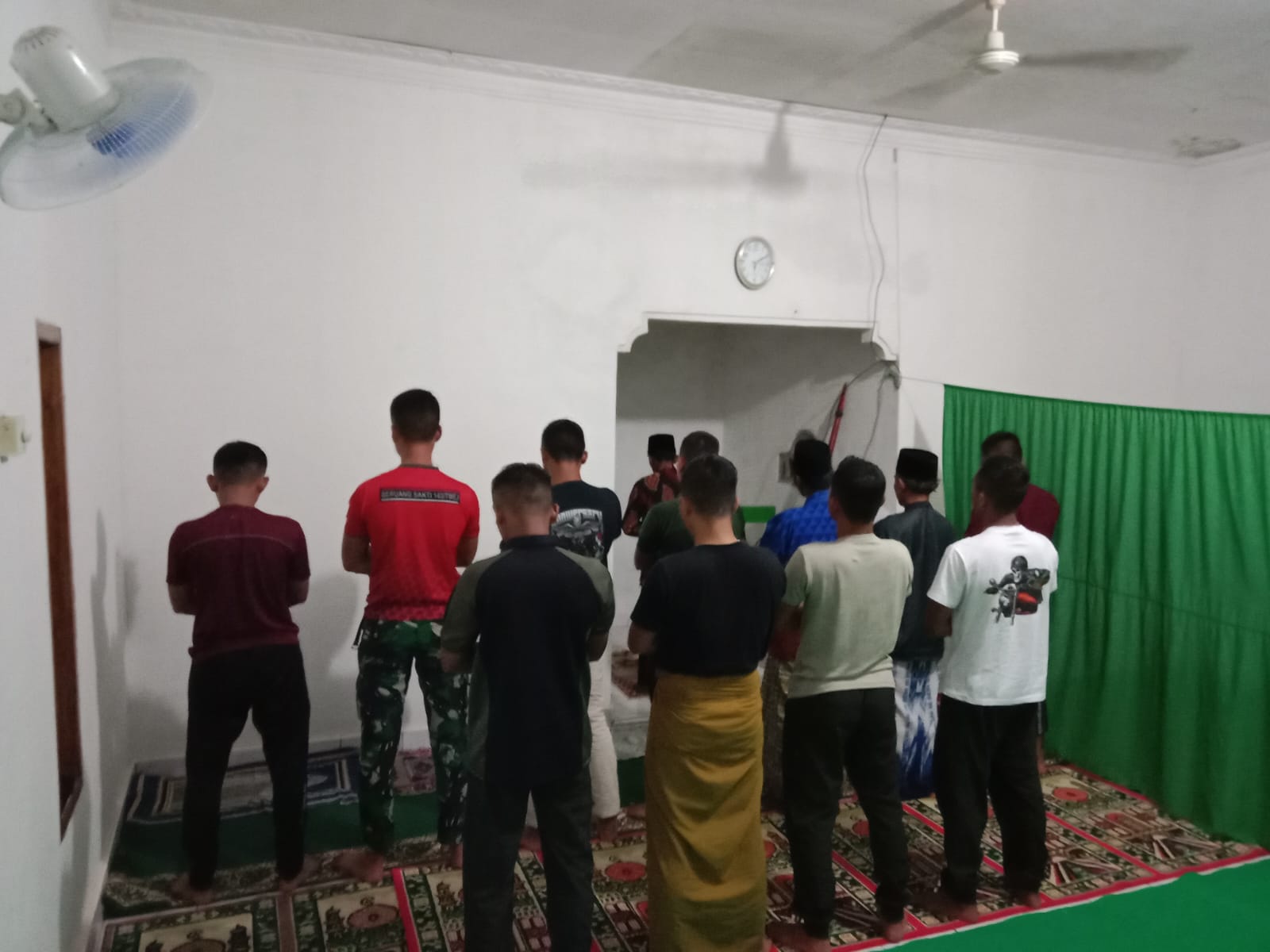 Ditengah kesibukan program TNI Manunggal Membangun Desa (TMMD) 117 Kodim 0429/Lamtim, anggota Satgas menyempatkan diri untuk ikut Sholat Magrib berjamaah di Musholla Miftahul Huda, Dusun 3, Desa Sumber Marga, Sabtu (15/7/2023).