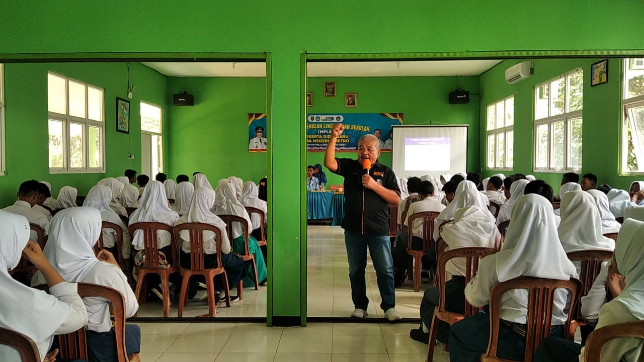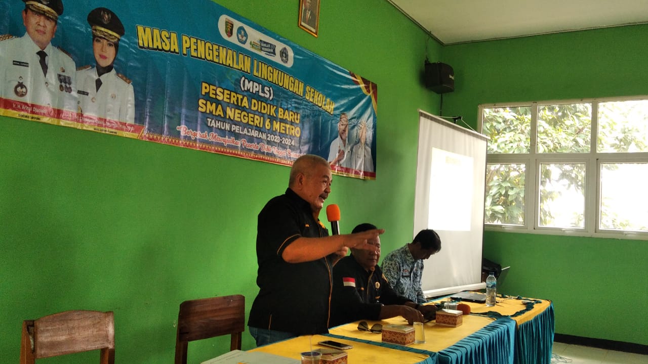 Sebanyak 250 siswa Sekolah Menengah Atas (SMA) Negeri 6 Kota Metro mengikuti penyuluhan narkoba dalam rangka Masa Pengenalan Lingkungan Sekolah (MPLS) TA 2023 yang diberikan oleh tutor penyuluh narkoba Dewan Pimpinan Cabang Gerakan Nasional Anti Narkotika (DPC GRANAT) Kota Metro.