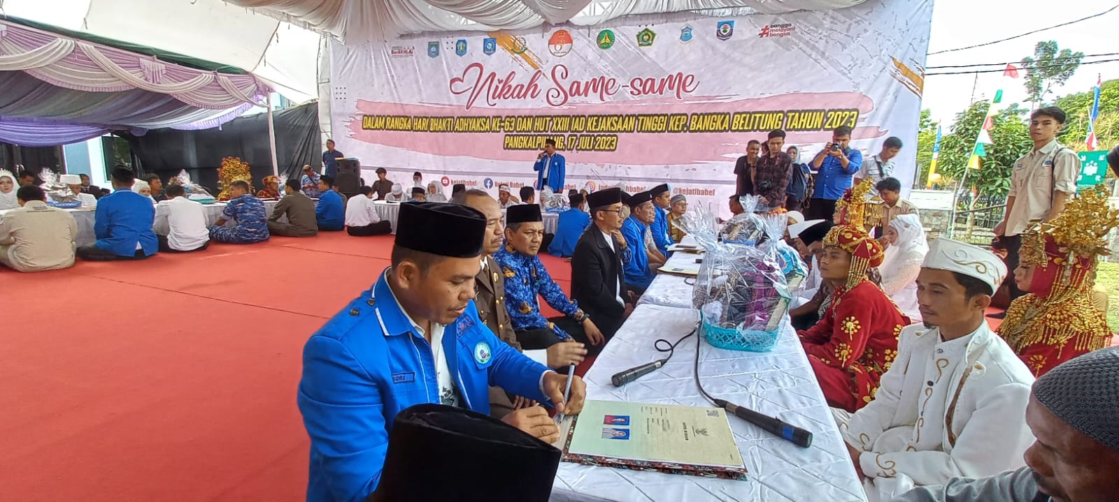 Kepala Kejaksaan Tinggi (Kajati) Babel, Asep Maryono mengatakan nikah bersama atau nikah massal ini diikuti 57 pasangan pengantin. Dari 57 pasangan, ada 11 pasangan yang sebelumnya menikah aecara agama saja.