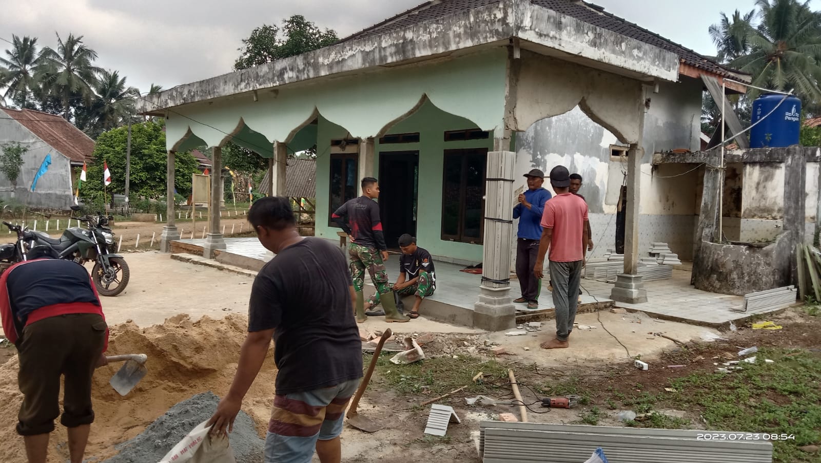Renovasi tempat ibadah umat Muslim yang berlokasi di Dusun 2, Desa Sumber Marga, Kecamatan Way Jepara ini dilakukan oleh Satgas TMMD bersama-sama dengan masyarakat, Senin (24/7/2023).