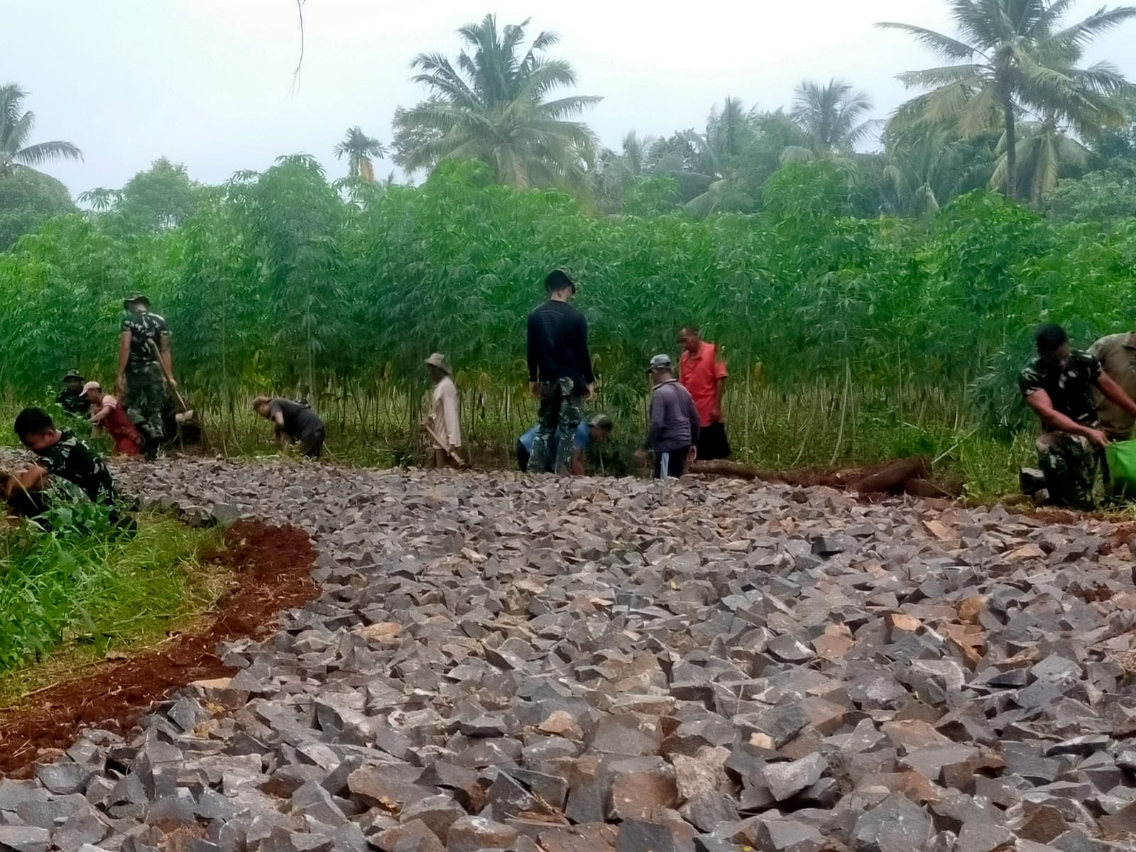 Sampai dengan hari ke-14 (Selasa, 25 Juli 2023) program TMMD ke-117, sebagian proses pengerjaan jalan sepanjang 2738 M sudah memasuki tahap pembereman samping kiri kanan jalan sebagai pengunci batu sebelum dilakukan pemadatan dengan wales.