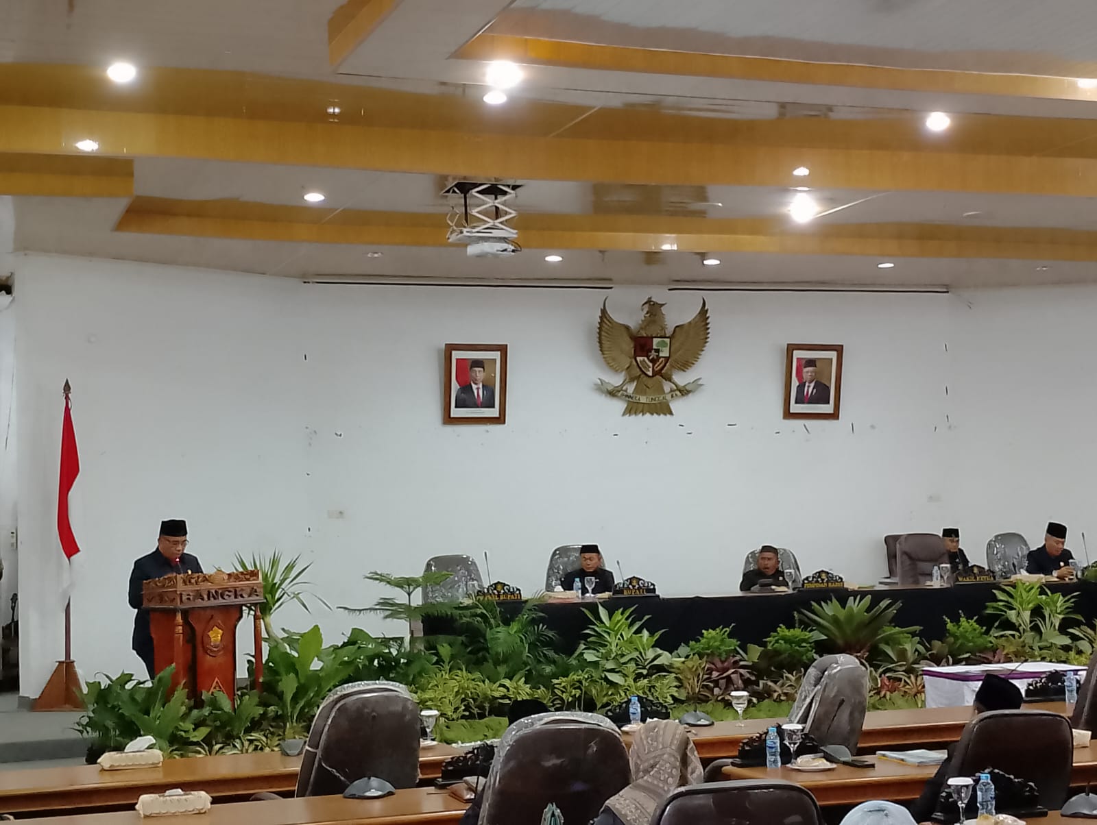 DPRD Bangka Gelar rapat paripurna Persetujuan Terhadap Raperda Tentang Pertanggungjawaban Pelaksanaan Anggaran Pendapatan Dan Belanja Daerah Kabupaten Bangka Tahun Anggaran 2022 Dan Persetujuan Raperda Usulan Bupati Bangka Dan Pengembalian RaperdaDPRD Kabupaten Bangka Senin (31/07/2023).