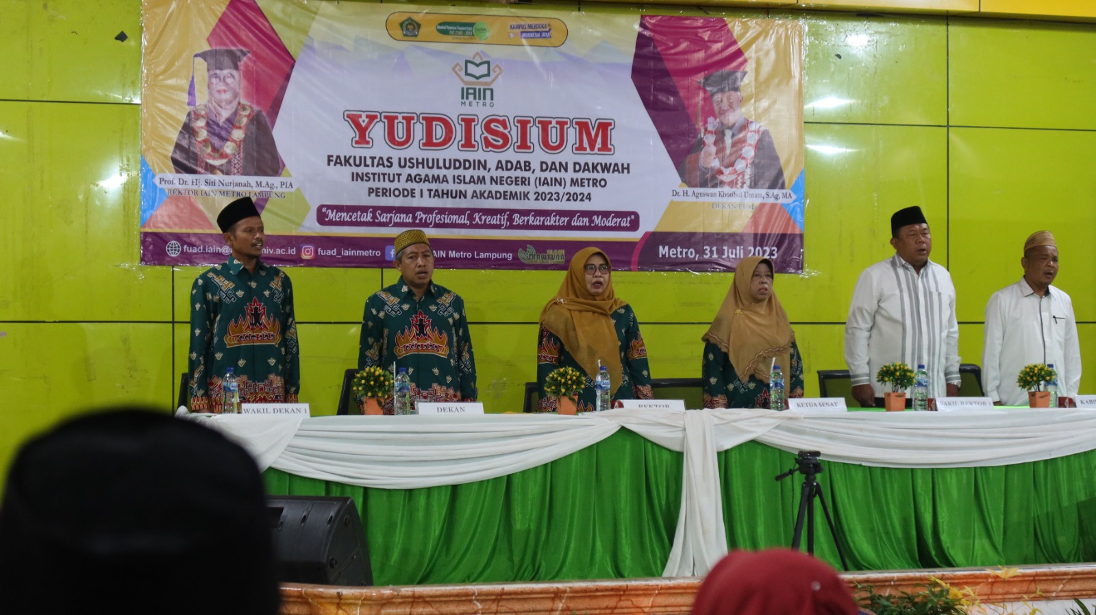 Fakultas Ushuluddin, Adab dan Dakwah (FUAD) Institut Agama Islam Negeri (IAIN) Metro mengikuti Yudisium Periode I Tahun Akademik 2023/2024. Kegiatan Yudisium FUAD IAIN Metro berlangsung di GSG kampus I setempat, pada Senin (31/07/2023).