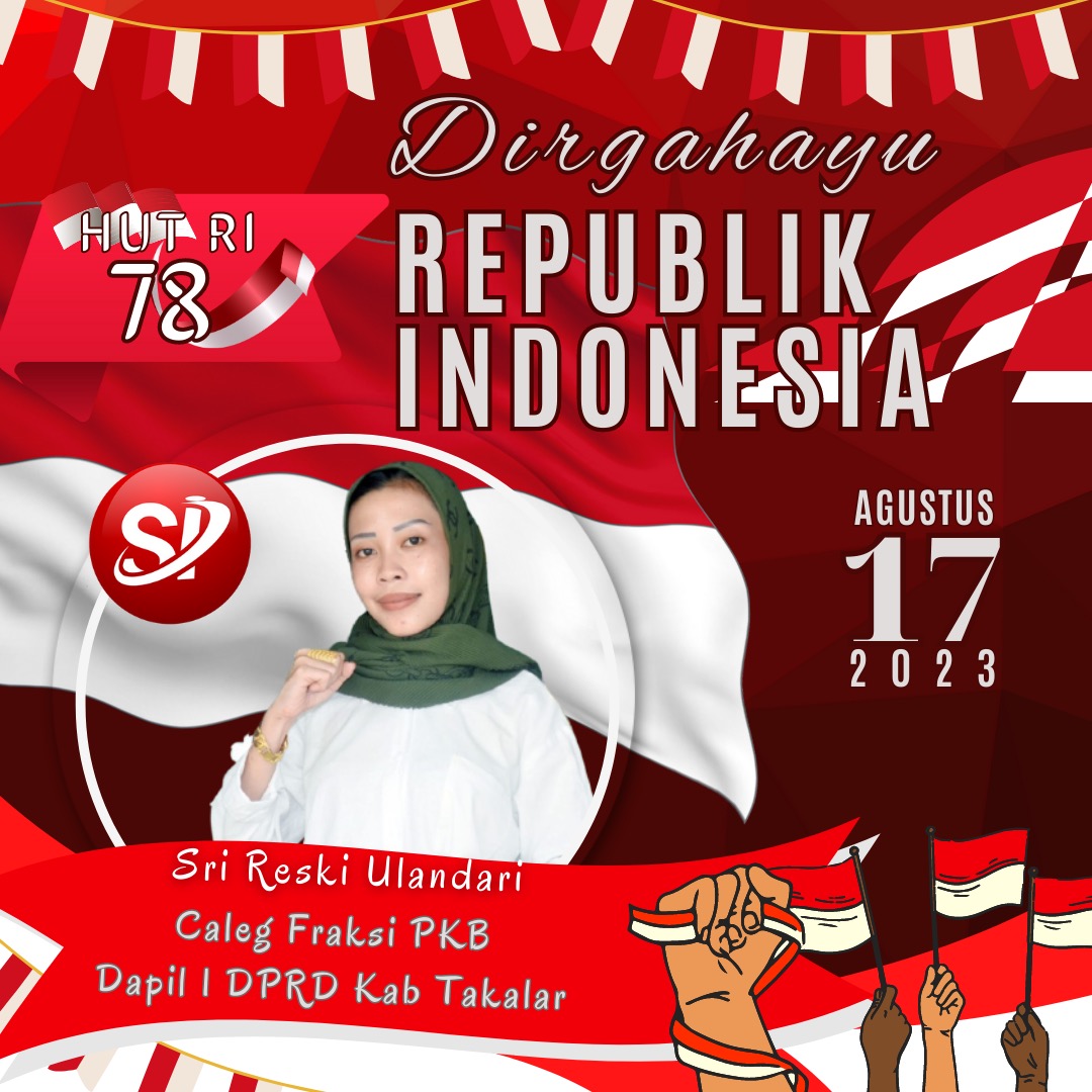 Sekilas Indonesia, Takalar – Caleg PKB Dapil 1 (Kecamatan Polut, Pattalassang, Poltim) Takalar, Sri Reski Ulandari Beri Ucapan Hut Kemerdekaan RI ke-78 mengucapkan Dirgahayu Republik Indonesia yang ke 78 tahun ” Terus Melaju untuk Indonesia Maju”. “Bismillah Bersama Sri Reski Ulandari Bajiki Takalar dan Terus Berjuang Demi Rakyat”