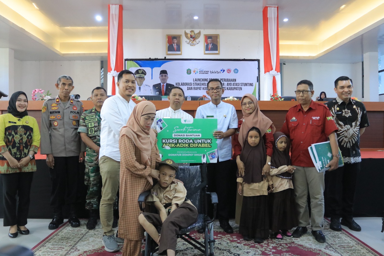 Rakor tersebut dirangkaikan dengan Launching Proyek Perubahan Kolaboradi Stakeholder Takalar Ayo Atasi Stunting (AAS). Dilanjutkan dengan penyerahan donasi bantuan kursi roda untuk anak-anak difabel yang dipersembahkan oleh donatur dompet duafa yang disaksikan oleh Ketua DPRD Kab. Takalar, perwakilan Kapolres Takalar, perwakilan Dandim 1426 Takalar, Sekda Takalar, para pimpinan OPD Takalar, serta para Camat, Kepala desa/lurah se-Kab. Takalar dan para Ketua TP.PKK Camat, Desa dan Kelurahan.Kamis,10/08/2023. (HT)