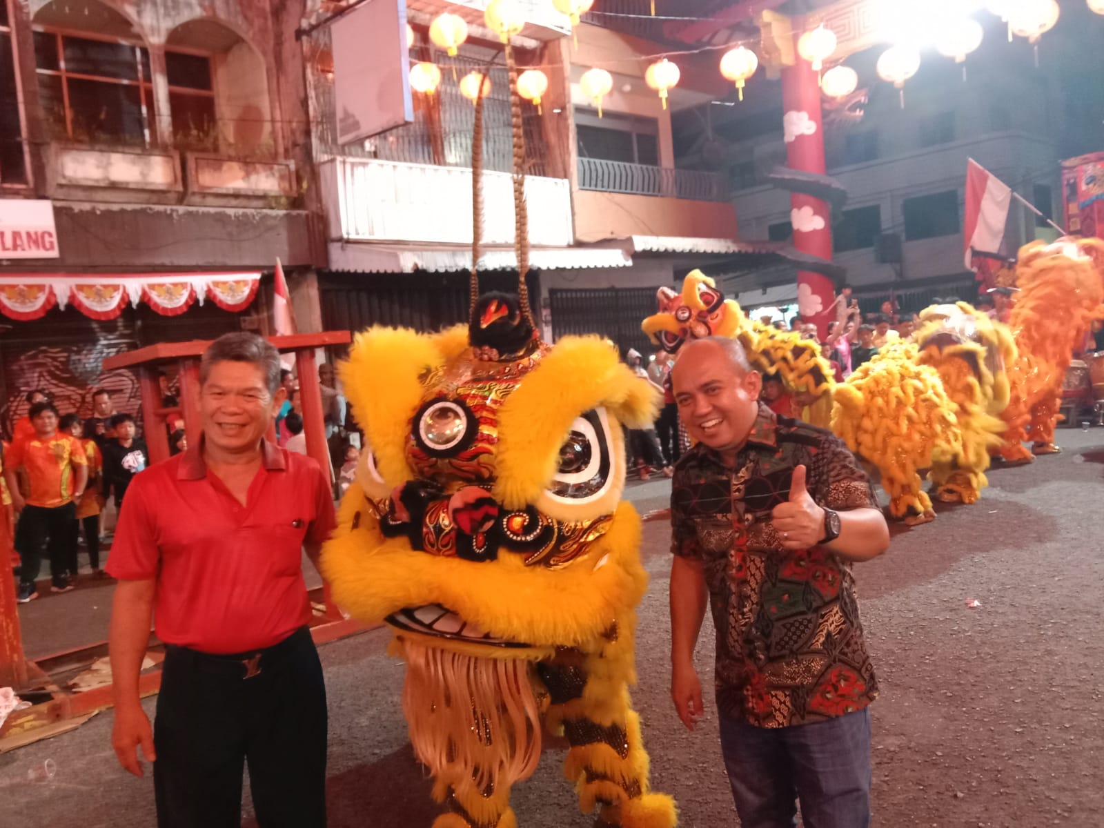 Sebelum meninggalkan lokasi, didampingi Forum Komunikasi Pimpinan Daerah (Forkopimda) Kota Pangkalpinang, Wako Molen menyapa pemain barongsai di lokasi tersebut, ia juga menyapa sejumlah masyarakat etnis Tionghoa. (Ari)