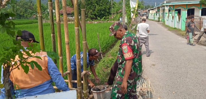 “Adapun Danramil 2304/Anyer memberi tugas pada anggotanya Babinsa Desa Sindang Mandi dan Babinsa Desa Grogol giat Karbak pembuatan gapura dan pembersihan selokan di masing-masing wilayah Desa,” urai Kapten Inf Khoerudin