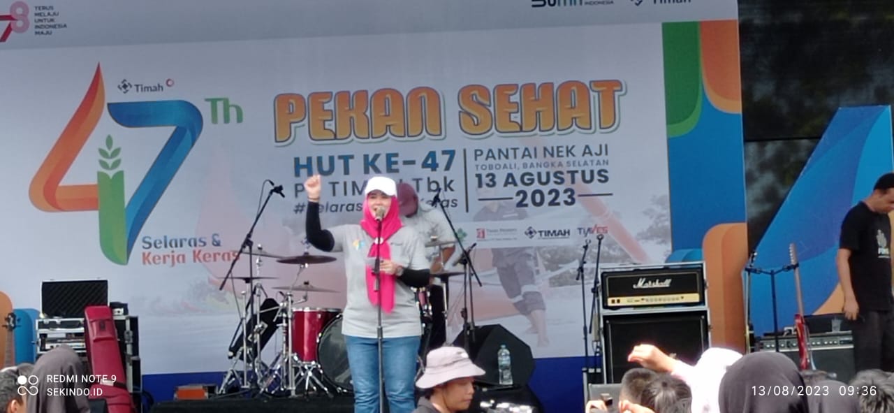 Sekilas Indonesia, Bangka Selatan – Wakil Bupati Bangka Selatan (Basel), Debby Vita Dewi, bersama masyarakat Basel mengapresiasi kegiatan pekan sehat yang digelar PT Timah Tbk, di Pantai Nek Aji, Toboali, Bangka Selatan, Minggu (13/08/23).