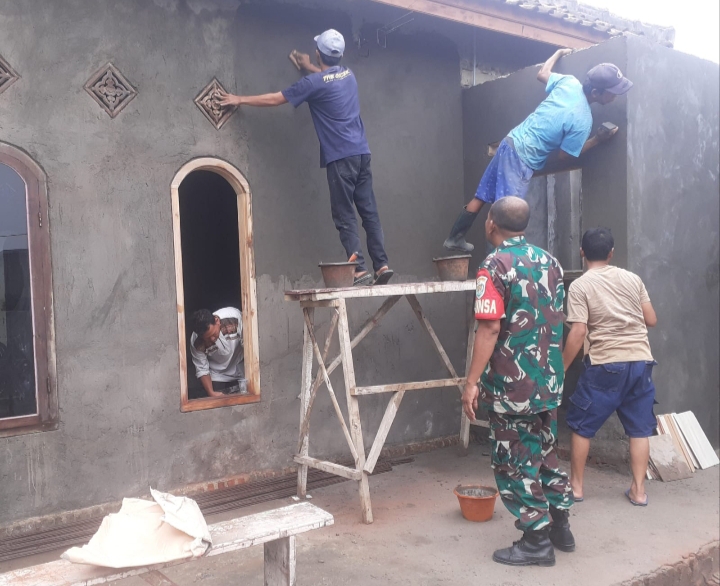 “Adapun Danramil 2304/Anyer memberi tugas pada anggotanya Babinsa Desa Sindang Mandi dan Babinsa Desa Banjarsari giat Karbak pemelasteran mushola dan membantu pembuatan rumah di masing-masing wilayah Desa,” urai Kapten Inf Khoerudin