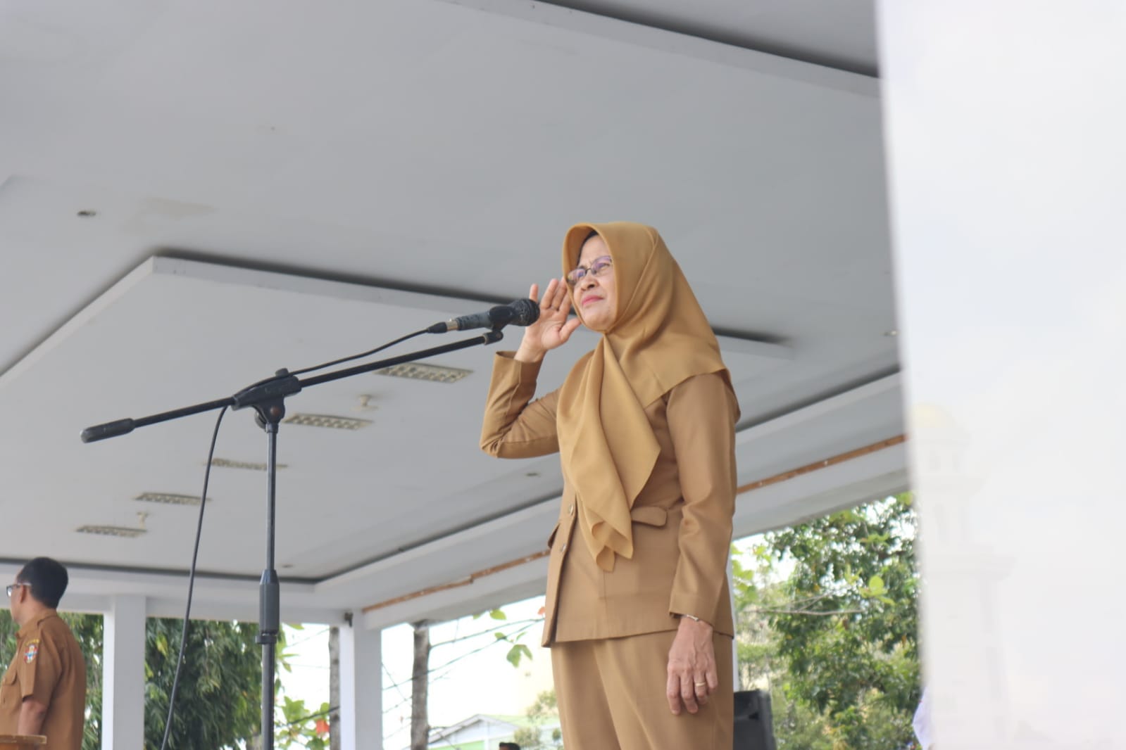 Turut mendampingi oleh Ketua Panitia, Andi Ismirar Sentosa yang juga merupakan Asisten Bidang Pemerintahan dan Kesra Setda Kabupaten Wajo, perwira TNI, Polri, pejabat, petugas dan peserta upacara serta sejumlah panitia lainnya.