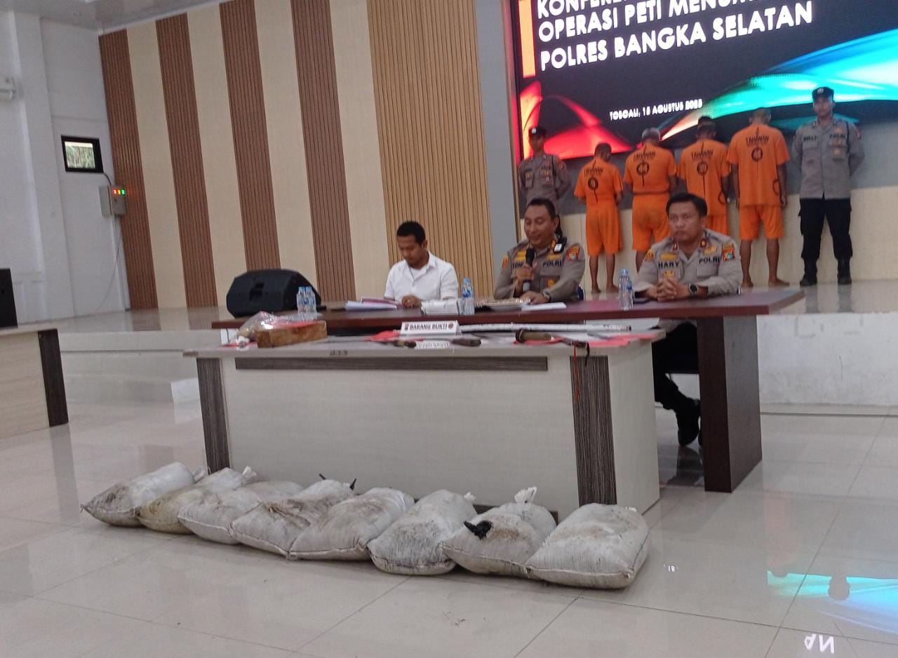 Sekilasindonesia.id, || Bangka Selatan – Hasil operasi Penertiban Tambang Ilegal (PETI) menumbing 2023, Polres Bangka Selatan berhasil amankan 4 tersangka.
