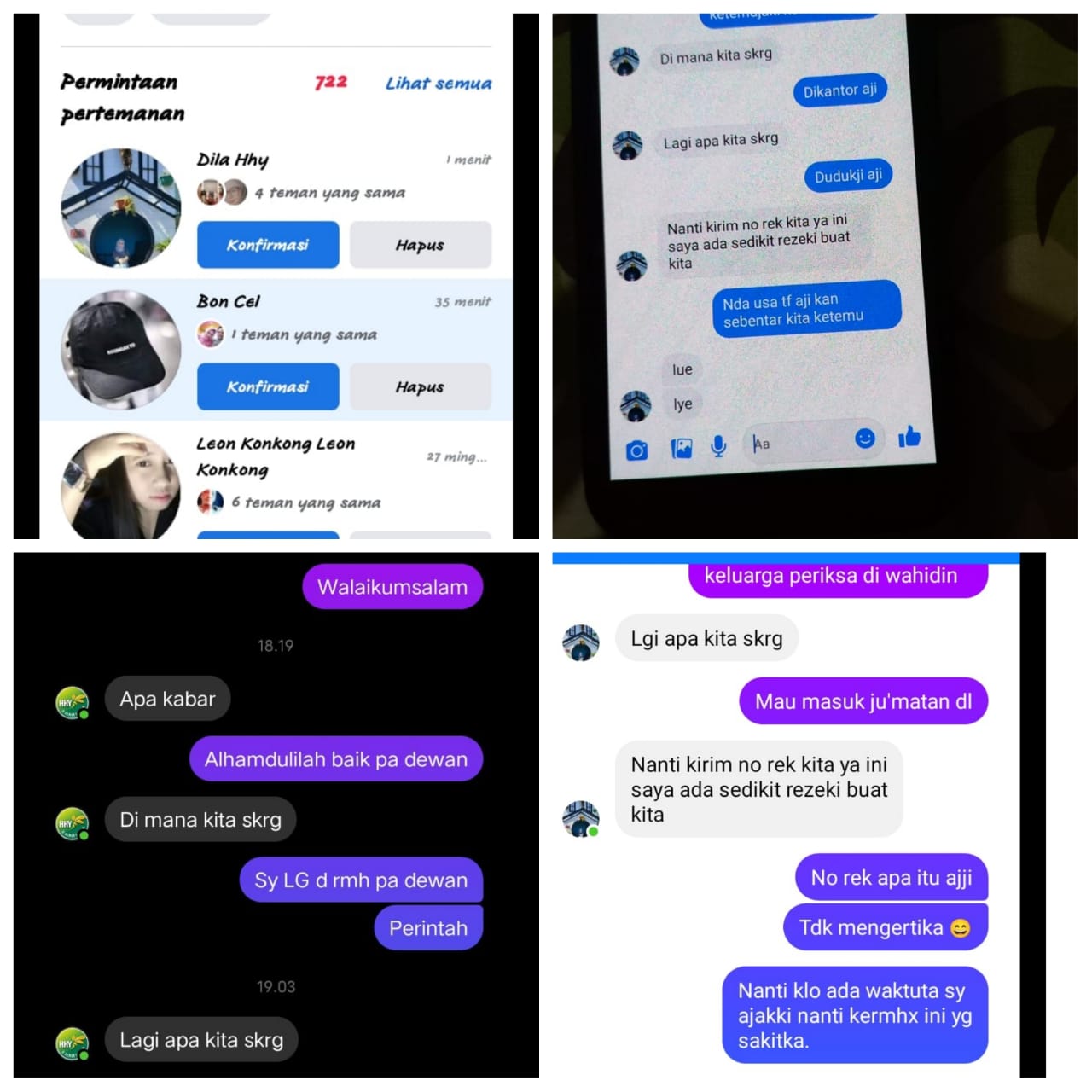 Demi menjaga nama baik kami di mata masyarakat Sulawesi – Selatan maka pelaku penipuan yang telah menggunakan akun Facebook pribadi saya bersama H. Dila , maka dalam hal ini saya akan melaporkan kepada aparat penegak hukum,” tegasnya.