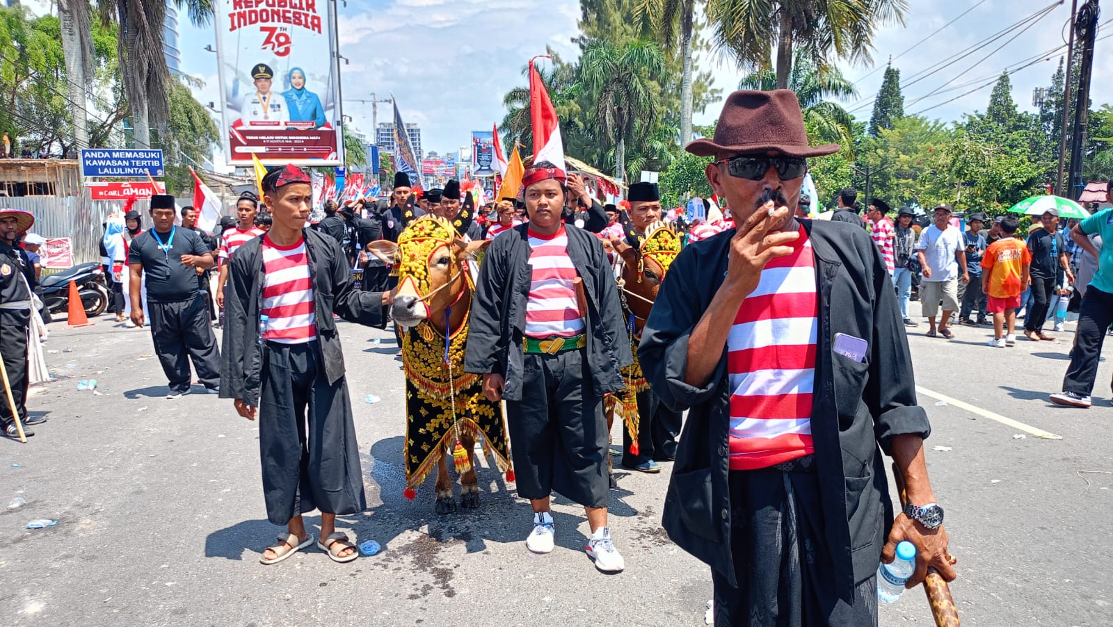 Lebih lanjut, Aan mengatakan bahwa dalam menyemarakkan pelaksanaan Karnaval HUT RI ke 78 di Negeri Serumpun Sebalai, pihaknya menampilkan sejumlah kesenian asal Pulau Madura, seperti Tari Gheleng, yang dibawakan oleh Srikandi Ikama, Laskar Sakera yang dibawakan Lapema serta Karapan Sapi Madura.