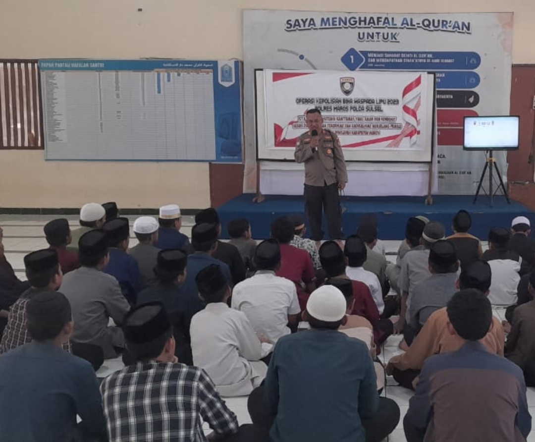 Kedatangan Kasat Binmas bersama personel Polres Maros di Ponpes Darul Istiqomah disambut dengan tangan terbuka oleh pengurus dan memberikan waktu kepada petugas Kepolisian menyampaikan giat Operasi Bina Waspada dihadapan puluhan santri.