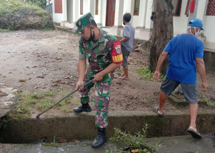 “Dimana Babinsa Desa Kemasan yang mendapatkan tugas dari Danramil Cinangka mengatakan dalam melaksanakan giat Karbak membantu membersihkan saluran air di wilayah Kampung Sirih,” ujar Babinsa Sertu Wahyu.