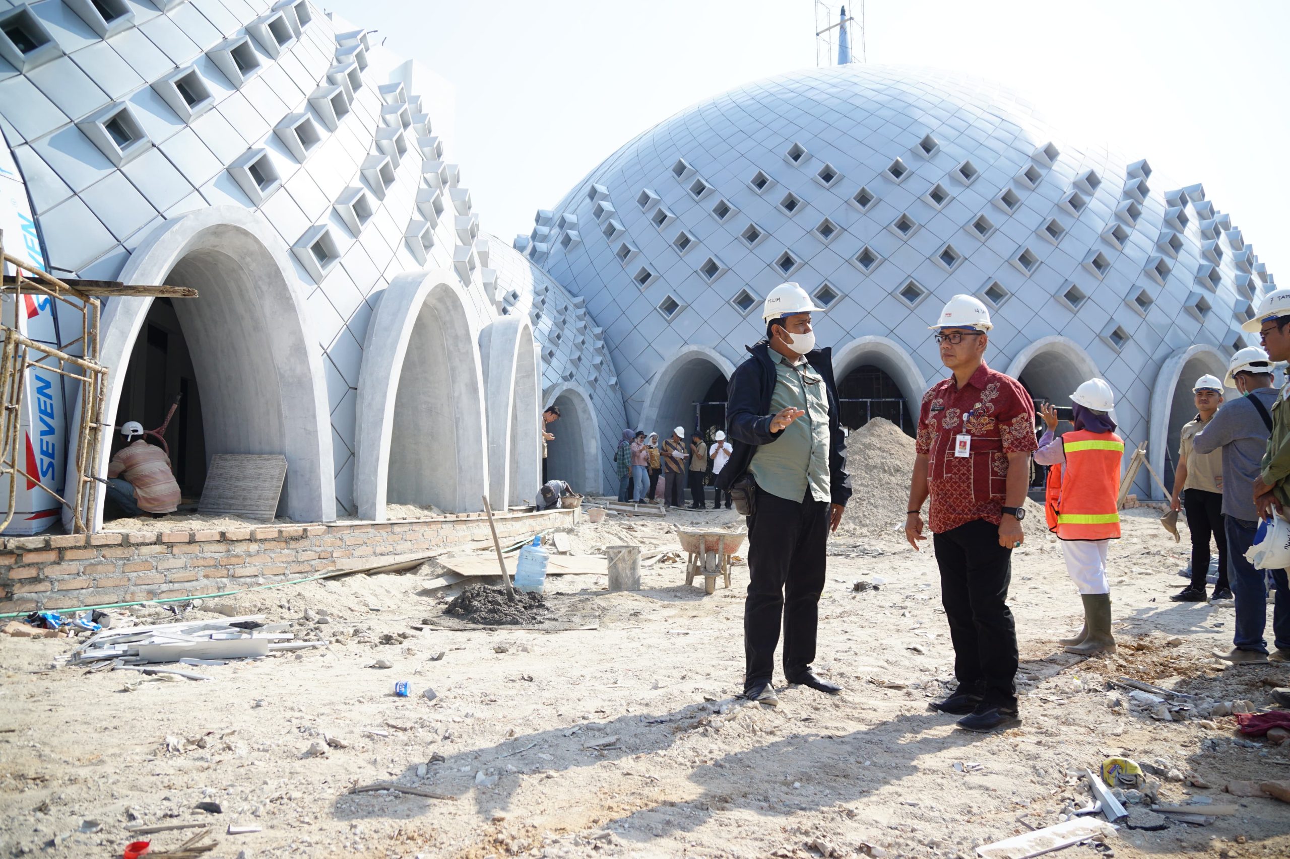“Hari ini meninjau progres pembangunan masjid agung kubah timah untuk memastikan selesai tepat waktu,” ungkap Mie Go.