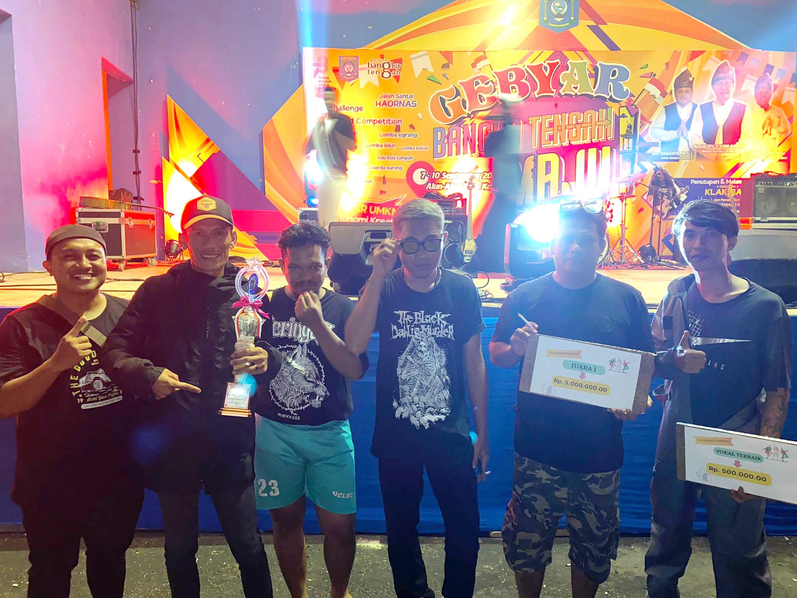 Group Band asal Bangka Selatan yang di gawangi oleh Risky (nyok) vokalis, Gilang Ramadhan (Daniel) Gitar 1, Bayu Gitar 2, Bassist Sandro, Keyboard Bey dan Drumer Viko, berhasil keluar sebagai juara 1 setelah tampil memukau dihadapan para penonton dan juri pada ajang Music Competition se Babel Gebyar Bangka Tengah.