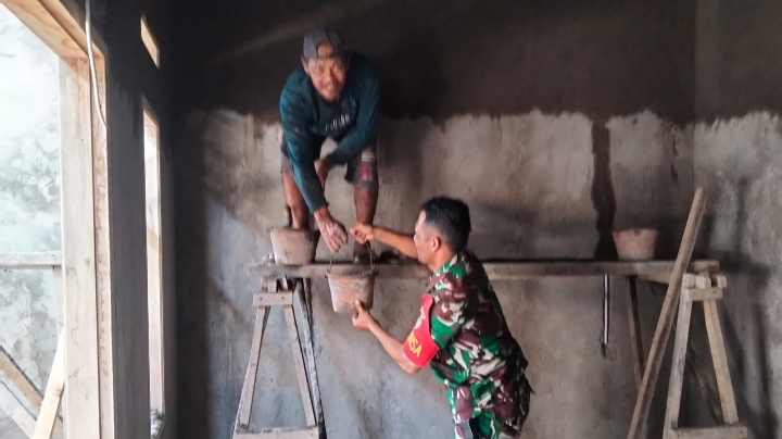 “Dimana Babinsa Desa Salira yang mendapatkan tugas dari Danramil Bojonegara mengatakan dalam melaksanakan giat Karbak membantu pembangunan rumah warga di Desa wilayah Desa Salira,” ujar Babinsa Serda Heri Adiyanto.