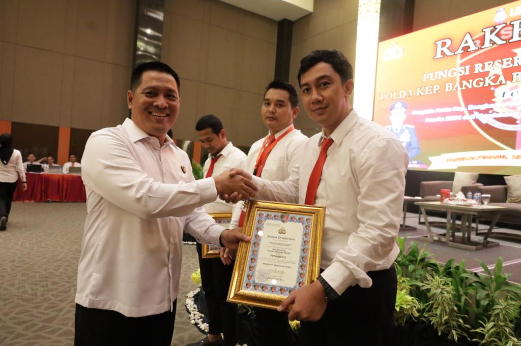 Piagam penghargaan dari Polda Kepulauan Bangka Belitung tersebut diterima langsung oleh Kasat Reskrim AKP Ogan Arif Teguh Imani,