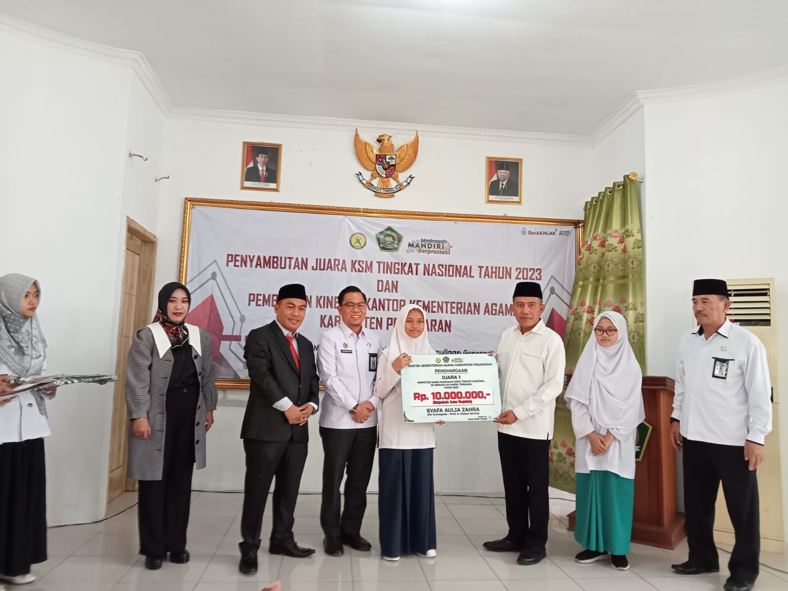 Kepala Kantor Kementerian Agama Kabupaten Pesawaran Wasril Purnawan menggelar kegiatan Penyambutan Juara Kompetisi Sains Madrasah (KSM) Tingkat Nasional tahun 2023 yang dilaksanakan di Kendari, Sulawesi Tenggara, pada Rabu 06 September 2023 lalu. KSM tingkat nasional tahun 2023 diikuti oleh siswa siswi berprestasi hasil dari seleksi mulai dari tingkat satuan pendidikan, Kabupaten/Kota, Provinsi hingga Nasional.