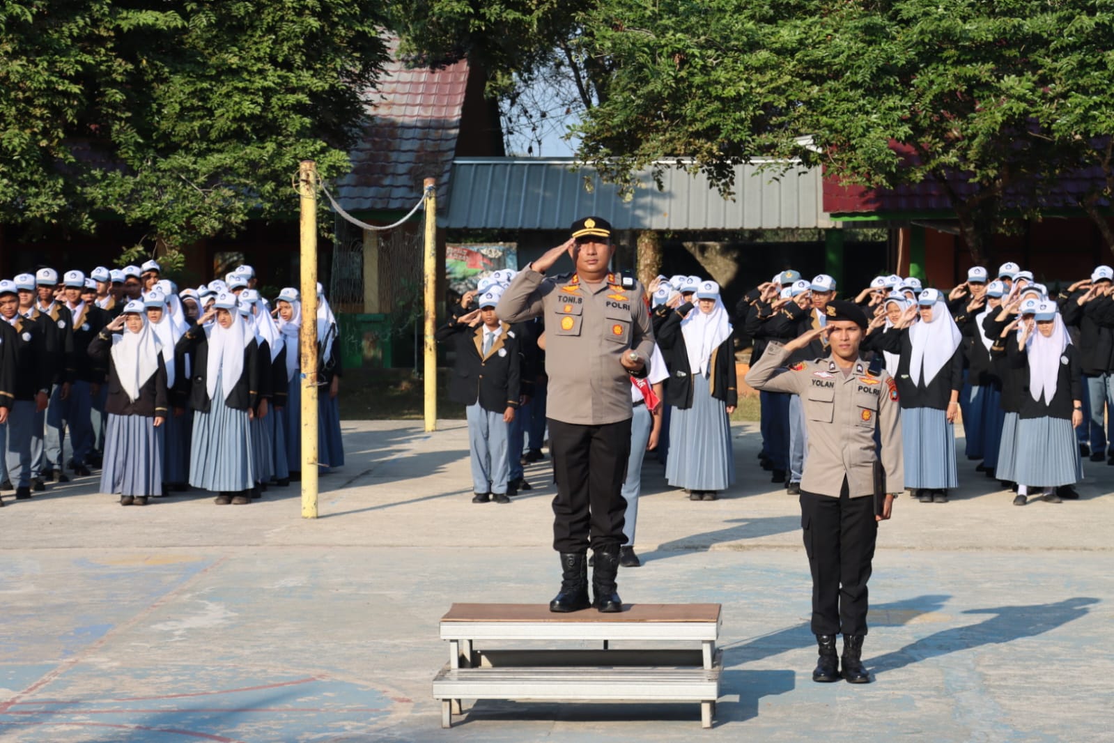 Kapolres Bangka Selatan AKBP Toni Sarjaka, menjadi pembina upacara di SMA Negeri 1 Toboali, Kabupaten Bangka Selatan, pada Senin (25/09/2023) Pagi.