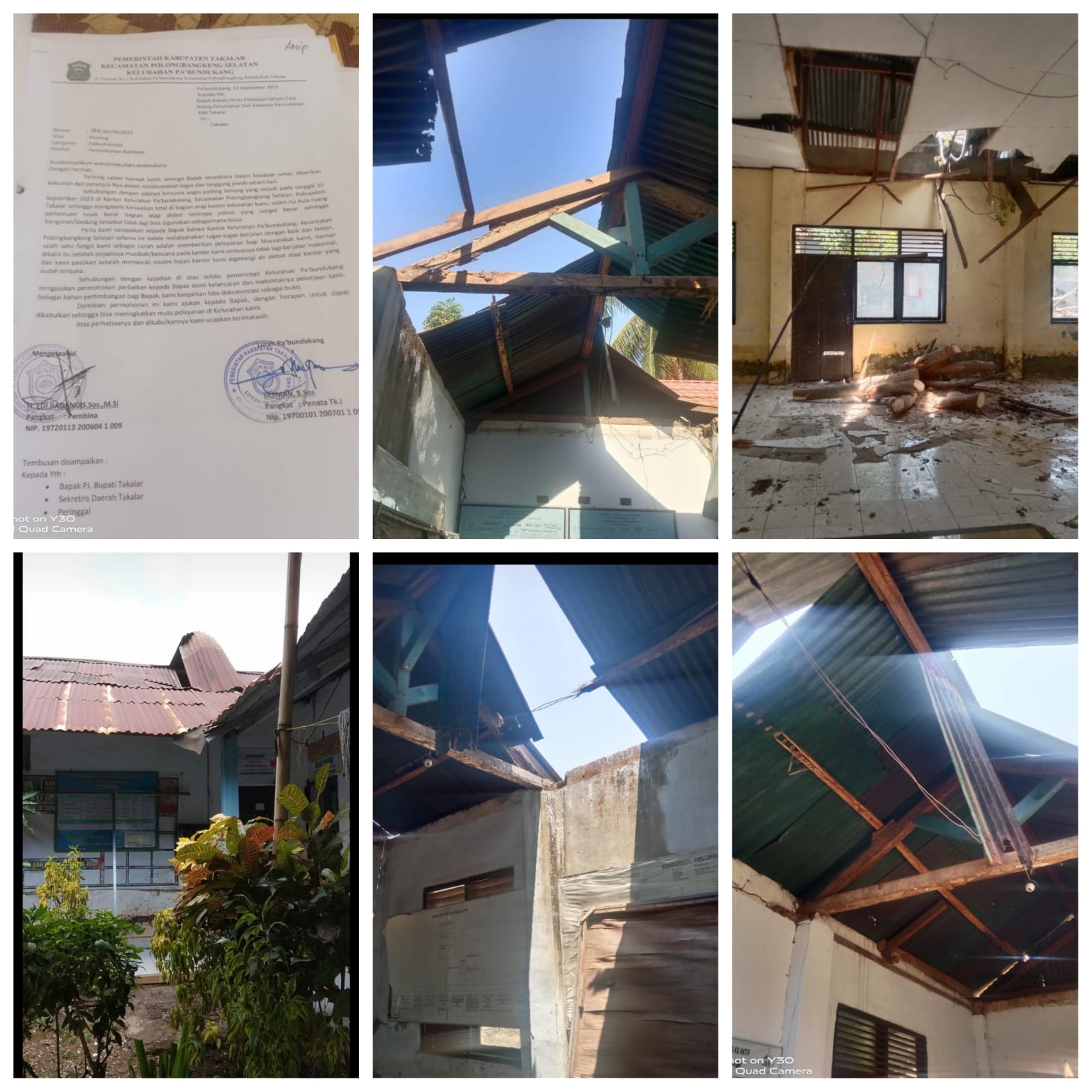 Sekilas Indonesia, Takalar – Bangunan kantor Kelurahan Pa’bundukang , Kecamatan Polongbangkeng Selatan(Pol-Sel) , Kabupaten Takalar , Rusak parah setelah dihempas Angin puting beliung yang terjadi 2 (dua)minggu yang lalu namun hingga sekarang belum tertangani oleh Pihak Pemerintah Kabupaten Takalar dengan ini pihak penanggulan Bencana dan pihak Dinas PUPR Takalar, Hal ini di ungkapkan Lurah Pa’bundukang, Jasman S. Sos, (26/09/2023).