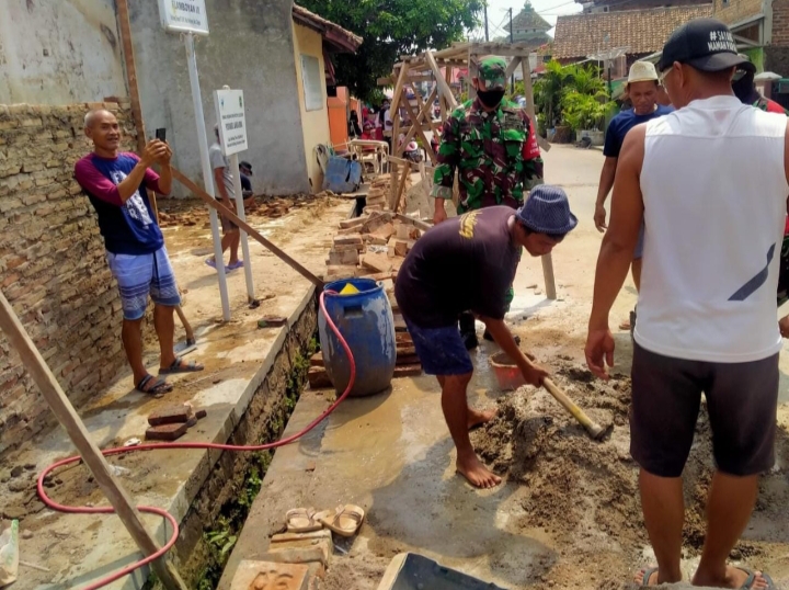 “Adapun Danramil 2301/Cilegon memberi tugas pada anggotanya Babinsa Kelurahan Kalitimbang dan Kelurahan Cikerai giat Karbak pembuatan pondasi pembatas jalan dan pembangunan rutilahu di masing-masing wilayah Kelurahan,” urai Mayor Inf Usman.