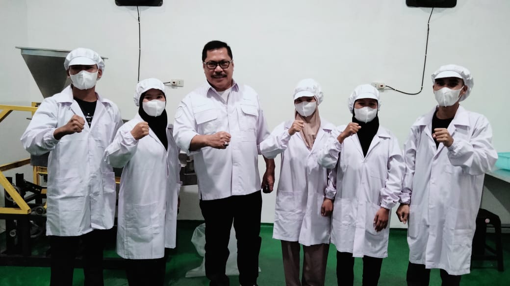 Dalam kunjungannya, Jan Maringka melihat proses produksi lada putih dalam kemasan di Sentra Produksi Bumdesma Mitra Lada Bersatu.