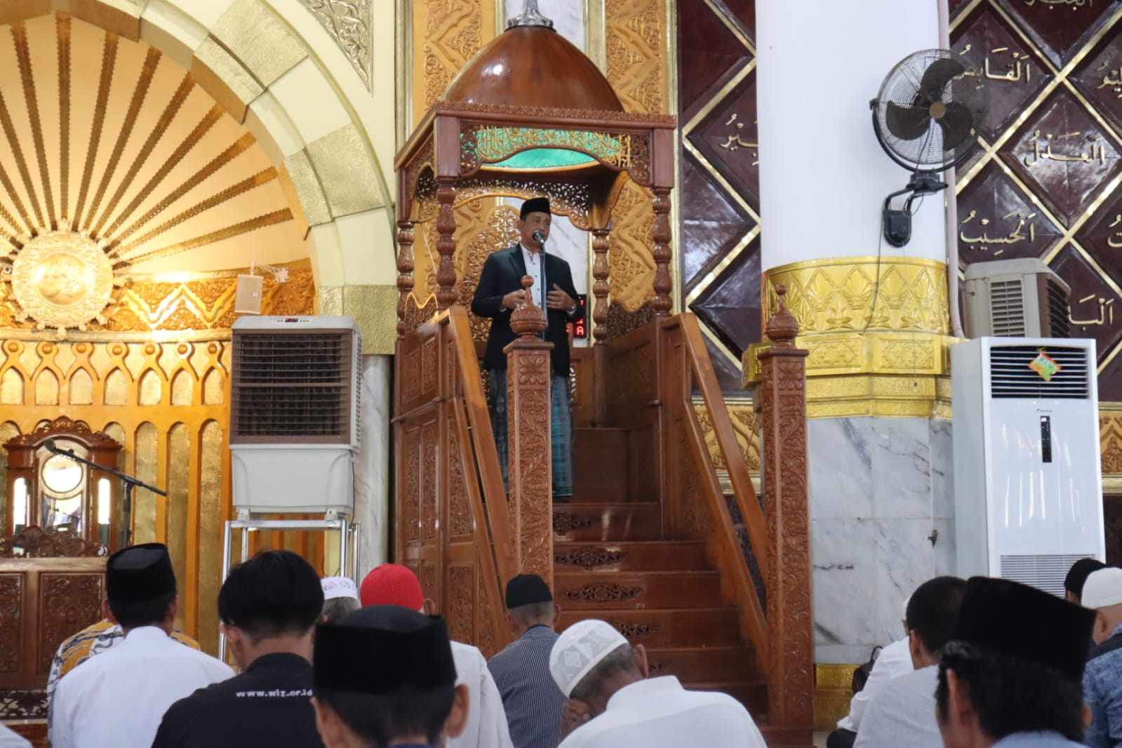 Hal tersebut disampaikan Amran Mahmud saat membawakan Khutbah Jum’at di Masjid Agung Ummul Quraa Sengkang, Jum’at (29/9/2023). Tampak hadir melaksanakan Shalat Jum’at di Masjid Raya tersebut, Wakil Bupati Wajo, Amran serta sejumlah tokoh dan jemaah lainnya.