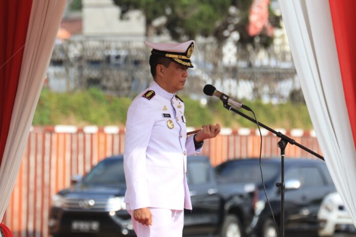 Sekretaris Daerah Provinsi Lampung, Fahrizal Darminto bersama Forkopimda Provinsi Lampung hadir dalam upacara yang bertema “Pancasila Pemersatu Bangsa Menuju Indonesia Maju,”