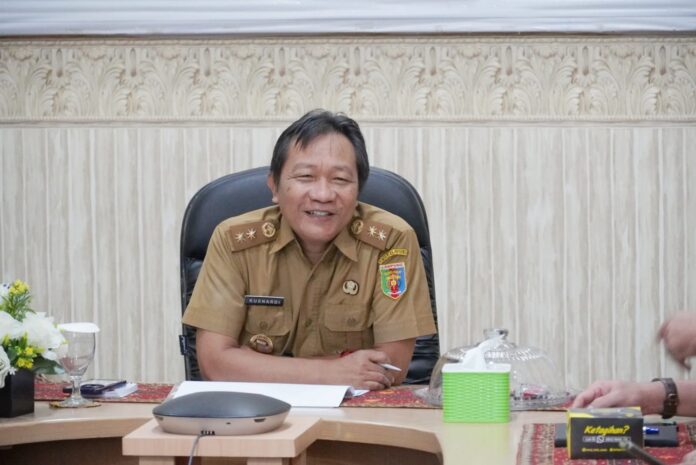 Asisten Perekonomian dan Pembangunan Provinsi Lampung, Kusnardi mengikuti Rapat Koordinasi Pengendalian Inflasi Daerah secara virtual yang dipimpin oleh Inspektur Jenderal Kementerian Dalam Negeri, Tomsi Tohir, di Ruang Command Center lt.II Dinas Kominfotik Provinsi Lampung, Selasa (03/10/2023).