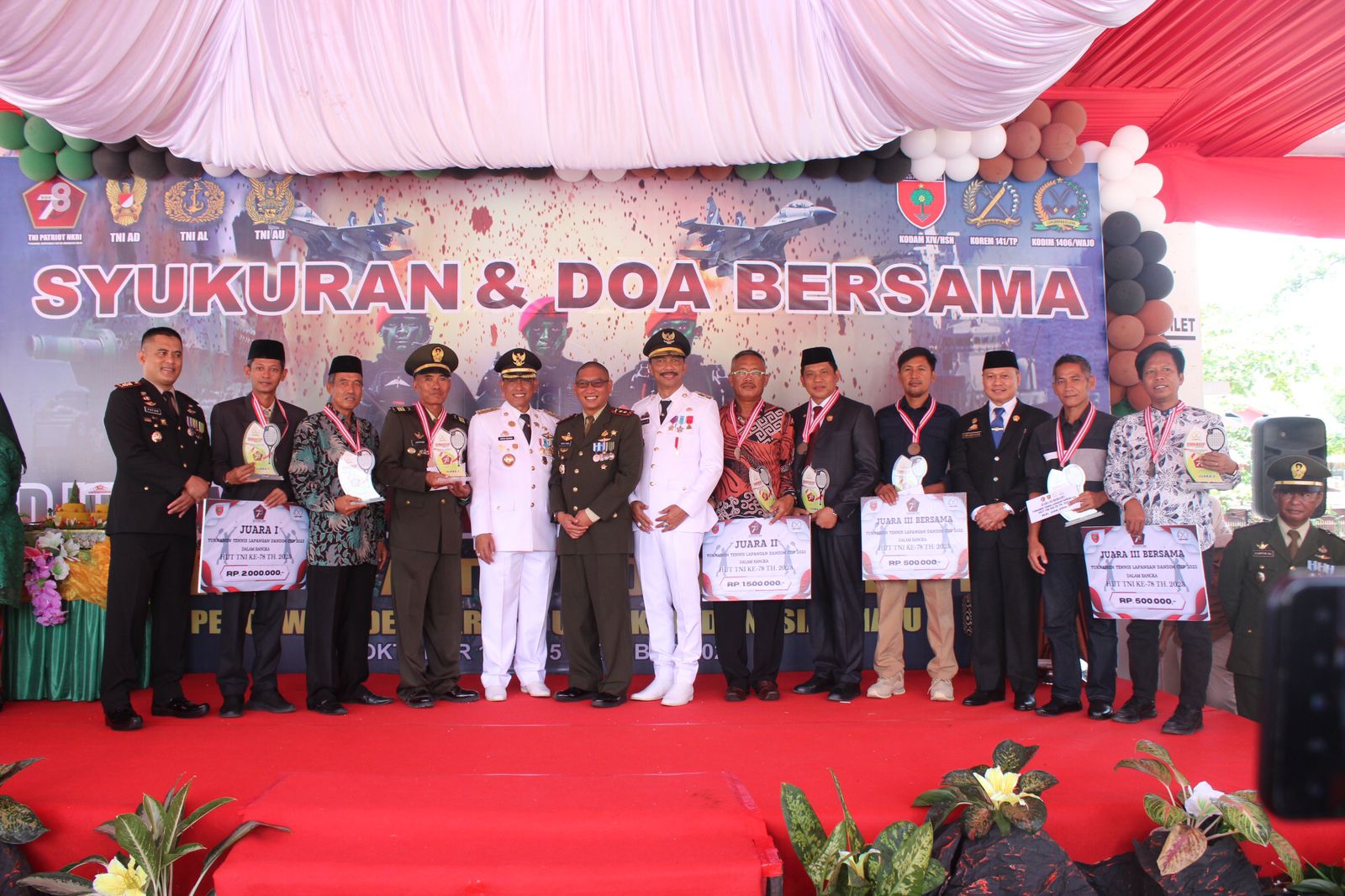 Upacara HUT TNI yang dirangkaikan dengan syukuran tersebut dihadiri Bupati Wajo, Amran Mahmud, Wakil Bupati Wajo , Amran, Ketua DPRD Wajo, Andi Muhammad Alauddin Palaguna, jajaran Forkopimda, Anggota DPRD Wajo, Sekda Wajo, Armayani, Pimpinan Instansi Vertikal, Kepala OPD, Camat, Ketua TP PKK, Sitti Maryam bersama Wakil Ketua, Hj Munawarah dan pimpinan organisasi wanita, Pimpinan Ormas, Kades, Lurah, Pimpinan Perbankan, Perusahaan serta sejumlah undangan lainnya.