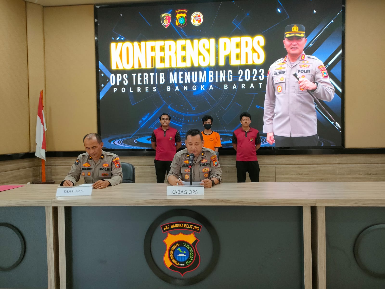 Polres Bangka Barat menggelar konferensi pers terkait Operasi Tertib Menumbing 2023 di gedung Catur Prasetya Polres Bangka Barat, Jumat (06/10/2023).