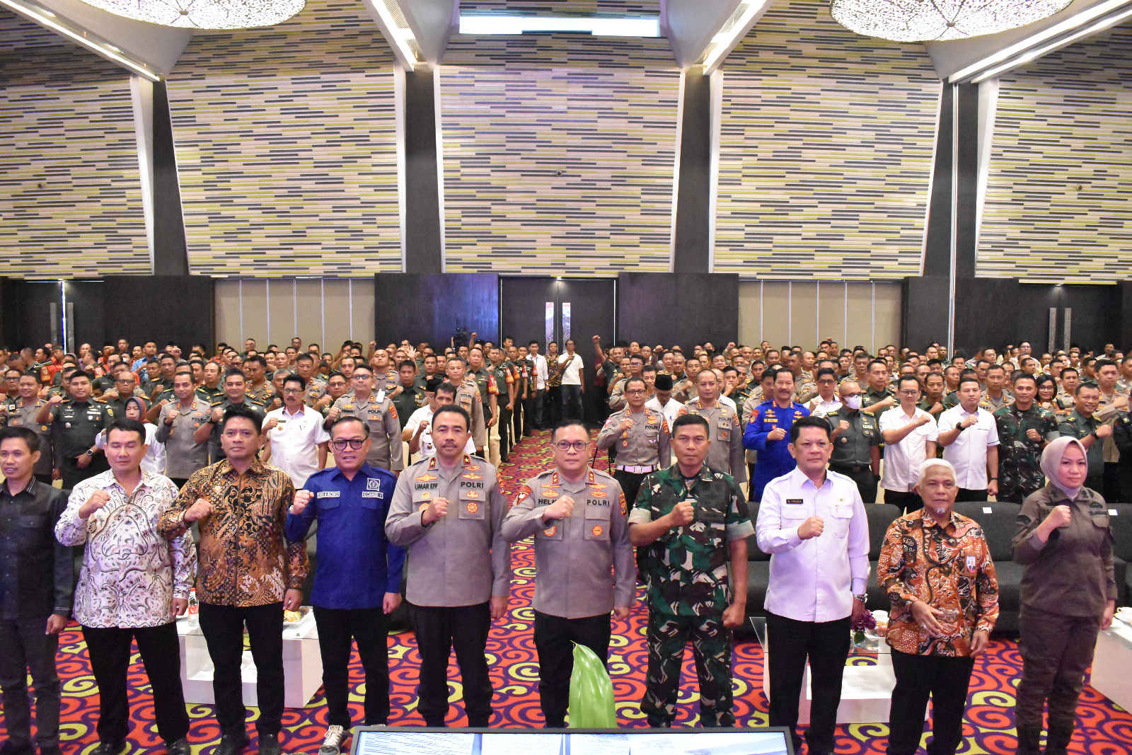 Lebih lanjut Kapolda menambahkan, “Kepada 6 pilar jajaran TNI – Polri dan Pemerintah Daerah harus solid dan sinergi. Ketika aparatur negara sudah bersatu maka stabilitas keamanan dan stabilitas politik dapat terwujud, sehingga kita mampu menolak tindakan- tindakan yang tidak terpuji yang mencederai demokrasi seperti menyebar fitnah, menyebar ujaran kebencian dan lain sebagainya. dan sebaliknya, kita harus mendorong kampanye berkualitas dan sehat, mengoptimalkan pemanfaatan teknologi informasi, mengedepankan politik adu ide, dan adu gagasan bukan politikadu domba”, tegas Kapolda.