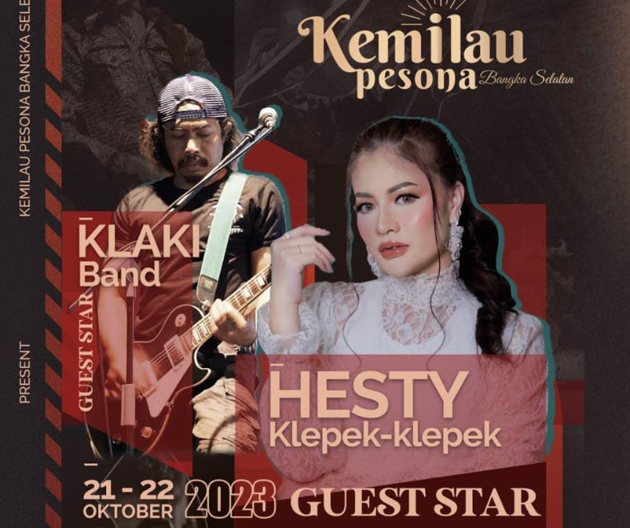 Group band asal Sungailiat dan artis dangdut ibukota pelantun lagu klepek-klepek tersebut datang ke Bangka Selatan untuk memeriahkan pada acara “Event Festival Kemilau Pesona Bangka Selatan” yang akan dilaksanakan pada tanggal 21-22 Oktober 2023 mendatang, di Pantai Nek Aji Toboali.