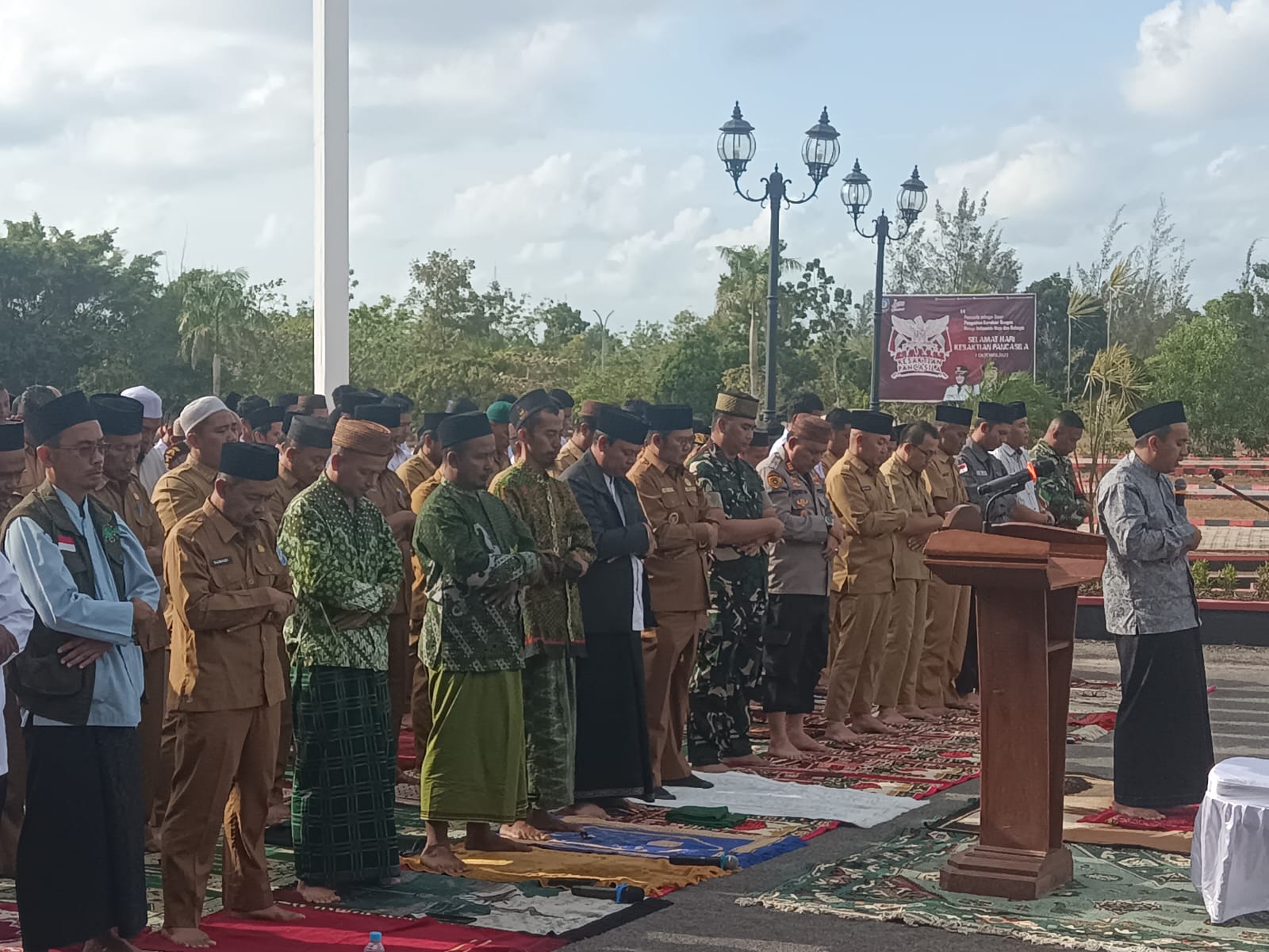 Sekilas Indonesia, Bangka Selatan – Pemerintah Kabupaten Bangka Selatan menggelar sholat istisqas berjamaah di Halaman Kantor Bupati Bangka Selatan, Senin (16/10/23).