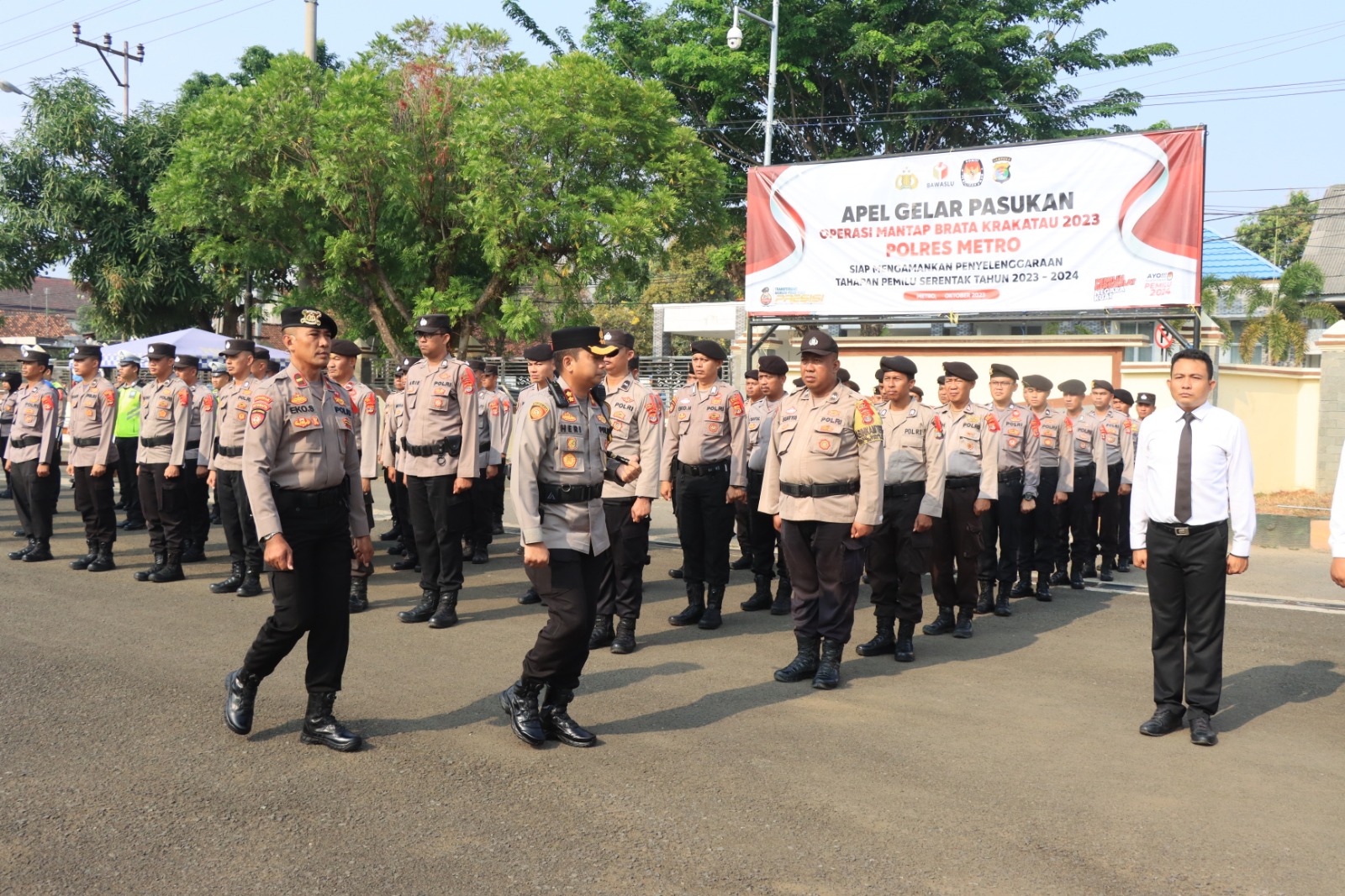 Dalam rangka kesiapan pengamanan menghadapi Pemilu serentak di tahun 2024 mendatang, Polres Metro Menggelar Apel Gelar Pasukan Operasi Mantap Brata Krakatau 2023. Selasa (17/10/2013) Pukul 08.00 Wib, di Lapangan Apel Polres Metro.