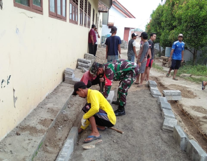Babinsa Koramil 2301/Cilegon, Karbak Pemasangan Batu Konblok