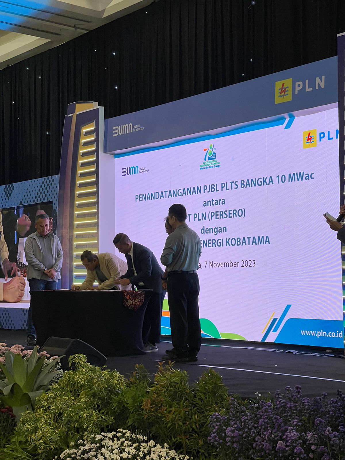 Penandatanganan dilakukan oleh General Manager PLN Unit Induk Wilayah (UIW) Bangka Belitung Mohammad Munief Budiman dan Direktur PT. Surya Energi Kobatama Ronggo Sulistyo, S.T., M.B.A., AK3., CCMS, dengan didampingi oleh Direktur Distribusi PLN Kantor Pusat Adi Priyanto.