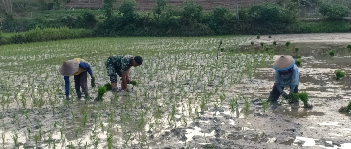 “Demikian juga dengan Babinsa Desa Talaga yang juga sama ditugaskan Danramil Mancak sama melaksanakan Bintahwil membantu warga menanam padi bertempat di Kampung Ketug,” imbuh Babinsa Serma Hamdani.