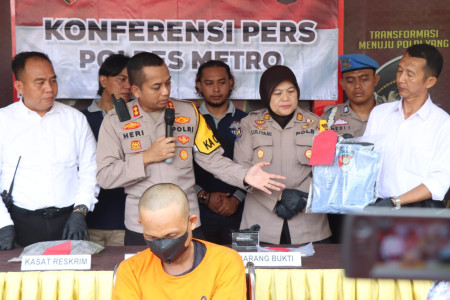 Hal tersebut diungkapkan pada Konferensi Pers Polres Metro yang dipimpin Kapolres Metro AKBP Heri Sulistyo Nugroho, S.IK., M.IK dengan didampingi Kasat Reskrim IPTU Rosali, S.H., M.H, Kasi Humas Polres Metro AKP Suliyani, S.IP dan personil Tekab 308 Sat Reskrim Polres Metro.