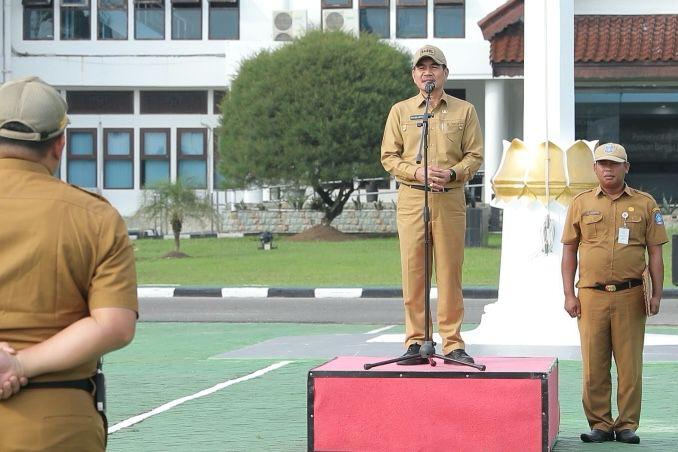 Sekilas Indonesia, Pangkalpinang – Dua hari menjelang pesta demokrasi serentak yang akan berlangsung pada tanggal 14 Februari 2024, Sekretaris Daerah (Sekda) Pemerintah Provinsi Kepulauan Bangka Belitung Naziarto kembali ingatkan Aparatur Sipil Negara (ASN) untuk menjunjung tinggi netralitas. saat menjadi Pembina Upacara Mingguan ASN Babel di Halaman Kantor.(12/2/24).senin