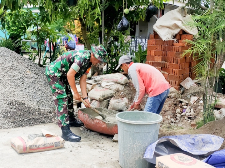 Sekilasindonesia.id, || SERANG – Babinsa Koramil 2302/Bojonegara Kodim 0623/Cilegon giat Karbak pembuatan rumah warga di wilayah Desa Ukirsari dan Desa Kertasana Kecamatan Bojonegara Kabupaten Serang Banten, Rabu (13/03/2024).
