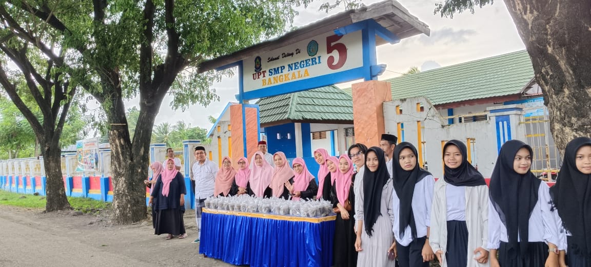 Selain buka bersama (Bukber) juga dirangkaikan bagi-bagi takjil gratis di depan sekolah SMPN 5 Bangkala, Kabupaten Jeneponto, bagi pengguna jalan roda dua maupun roda empat.