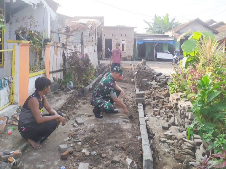 “Dimana Babinsa Kelurahan Jombang Wetan yang mendapatkan tugas dari Danramil Cilegon mengatakan dalam melaksanakan giat Karbak bersama masyarakat Link pegudangan Blok D melaksanakan pembuatan jalan sekaligus pemasangan paving blok di wilayah Kelurahan Jombang Wetan,” ujar Babinsa Sertu Riadi.